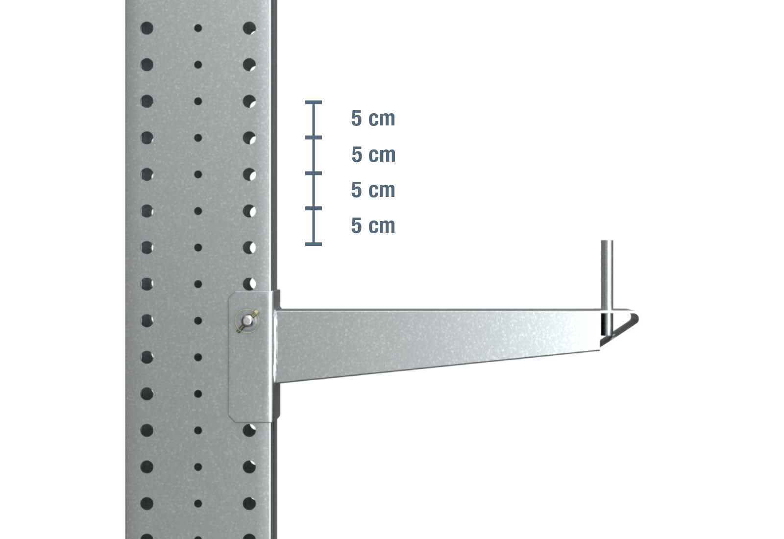 U některých modelů našich konzolových regálů můžete flexibilně nastavit výšku konzolových ramen. Modely KR3000 a KR6000 nabízejí možnost individuálního nastavení konzolových ramen v krocích po 5 cm. Naproti tomu ramena systému KR2500 jsou pevně svařena a neumožňují žádné výškové nastavení.