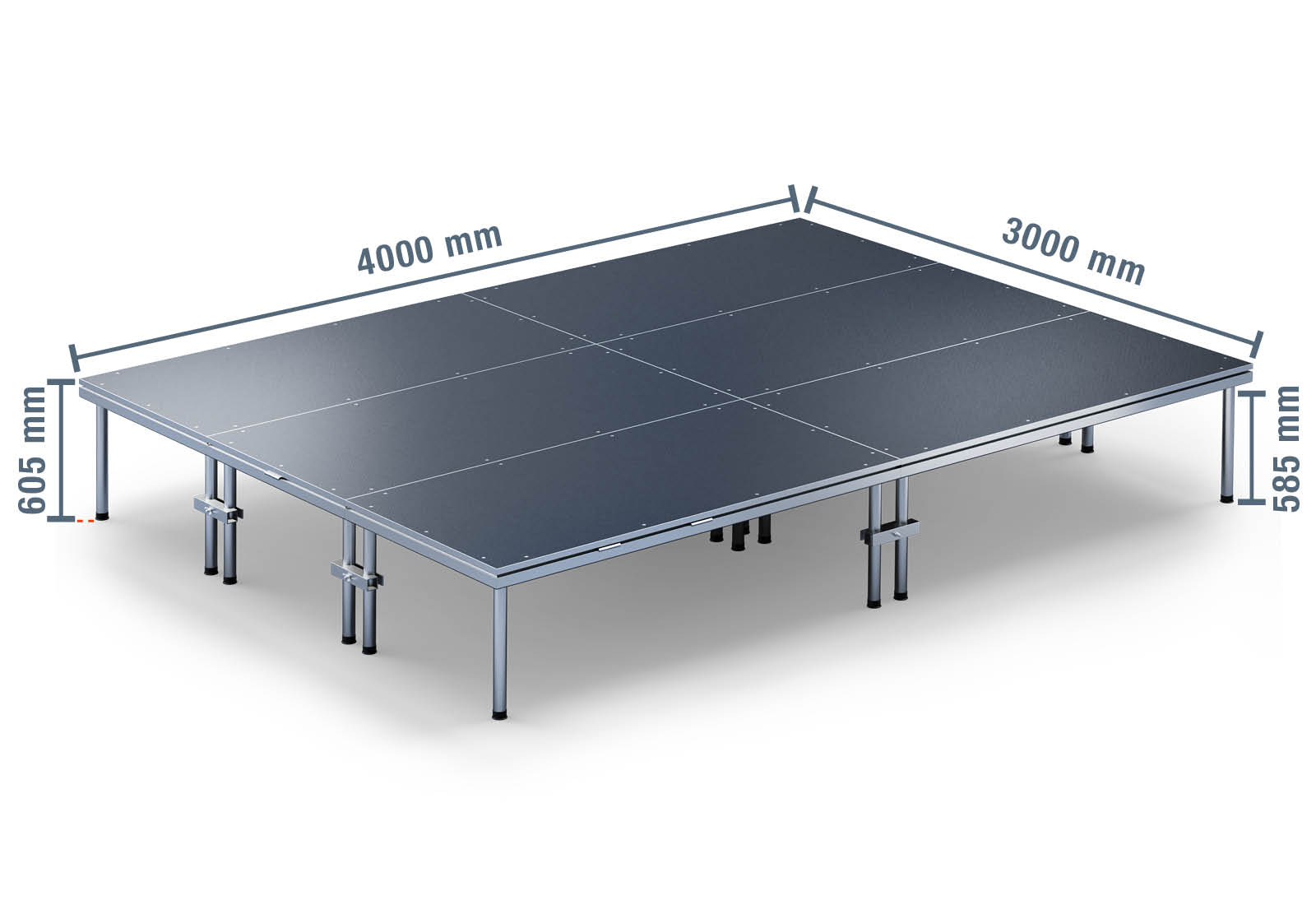4 m x 3 m Mobilní pódium EBM850/2, 605 mm vysoký, 6 moduly, 850 kg max. zatížení