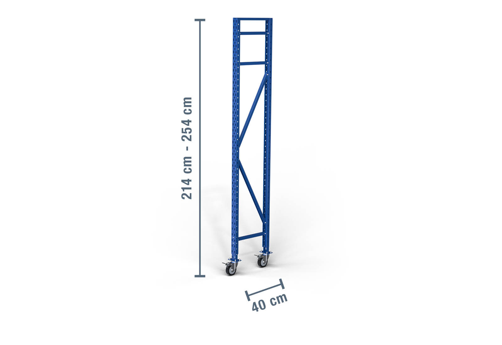 - 1 x 2.140 - 2.540 mm stojan / výškově nastavitelný / pojízdný pro skladovací regál LR2000 / hloubka 40 cm