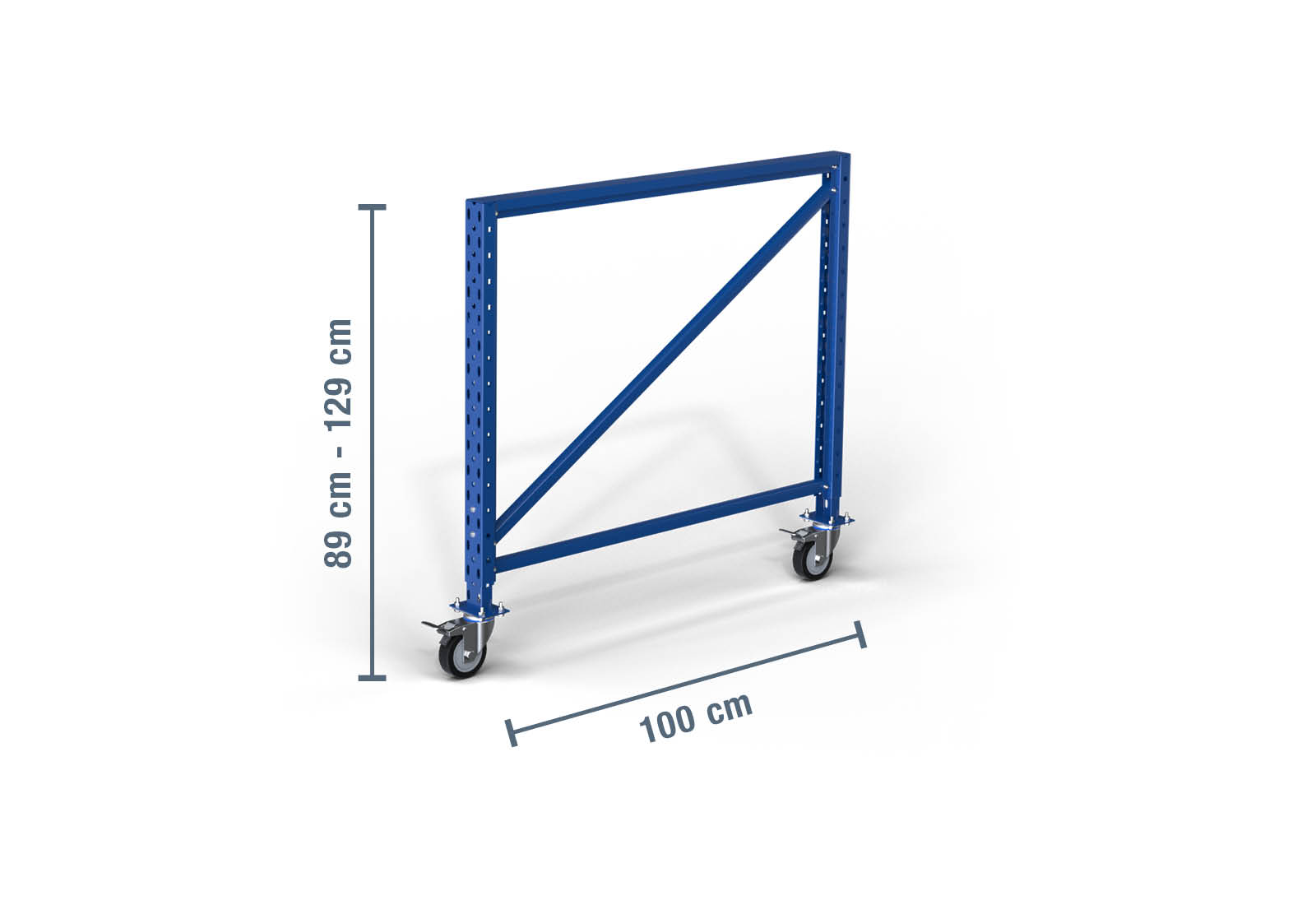 - 1 x 890 - 1.290 mm stojan / výškově nastavitelný / pojízdný pro balicí stoly / skladovací regál LR2000 / hloubka 100 cm