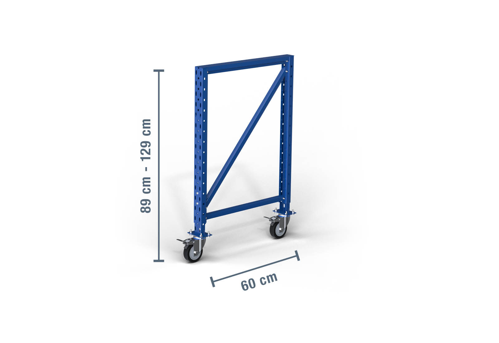 - 1 x 890 - 1.290 mm stojan / výškově nastavitelný / pojízdný pro balicí stoly / skladovací regál LR2000 / hloubka 60 cm