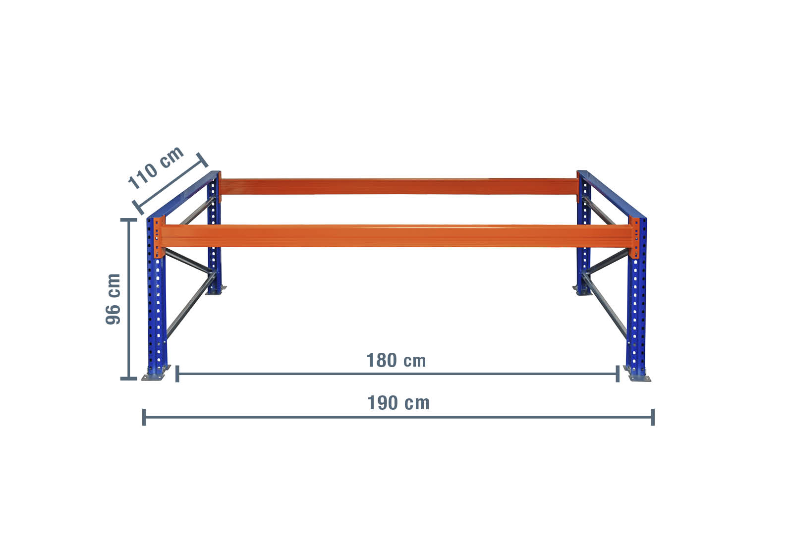 - 2 x stojan paletového regálu pro balicí stůl o výšce 960 mm / hloubka 110 cm