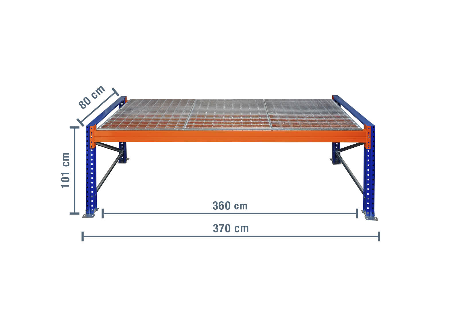 - 1 x mřížový rošt pro paletový regál, 360 cm x 80 cm (4 moduly na úroveň)