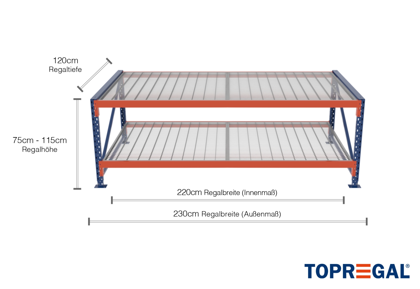 - 2 x mřížový rošt pro skladovací regál o šířce 220 cm / hloubka 120 cm