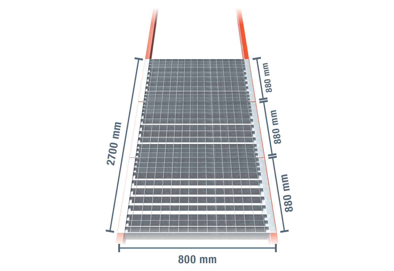 - Žárově pozinkovaný 270 cm široký mřížový rošt s vysokým zatížením 2.400 kg