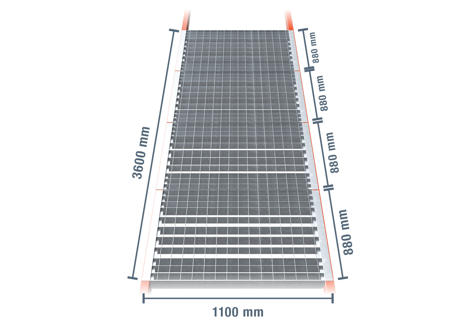 - Žárově pozinkovaný 360 cm široký mřížový rošt s vysokým zatížením 3.200 kg