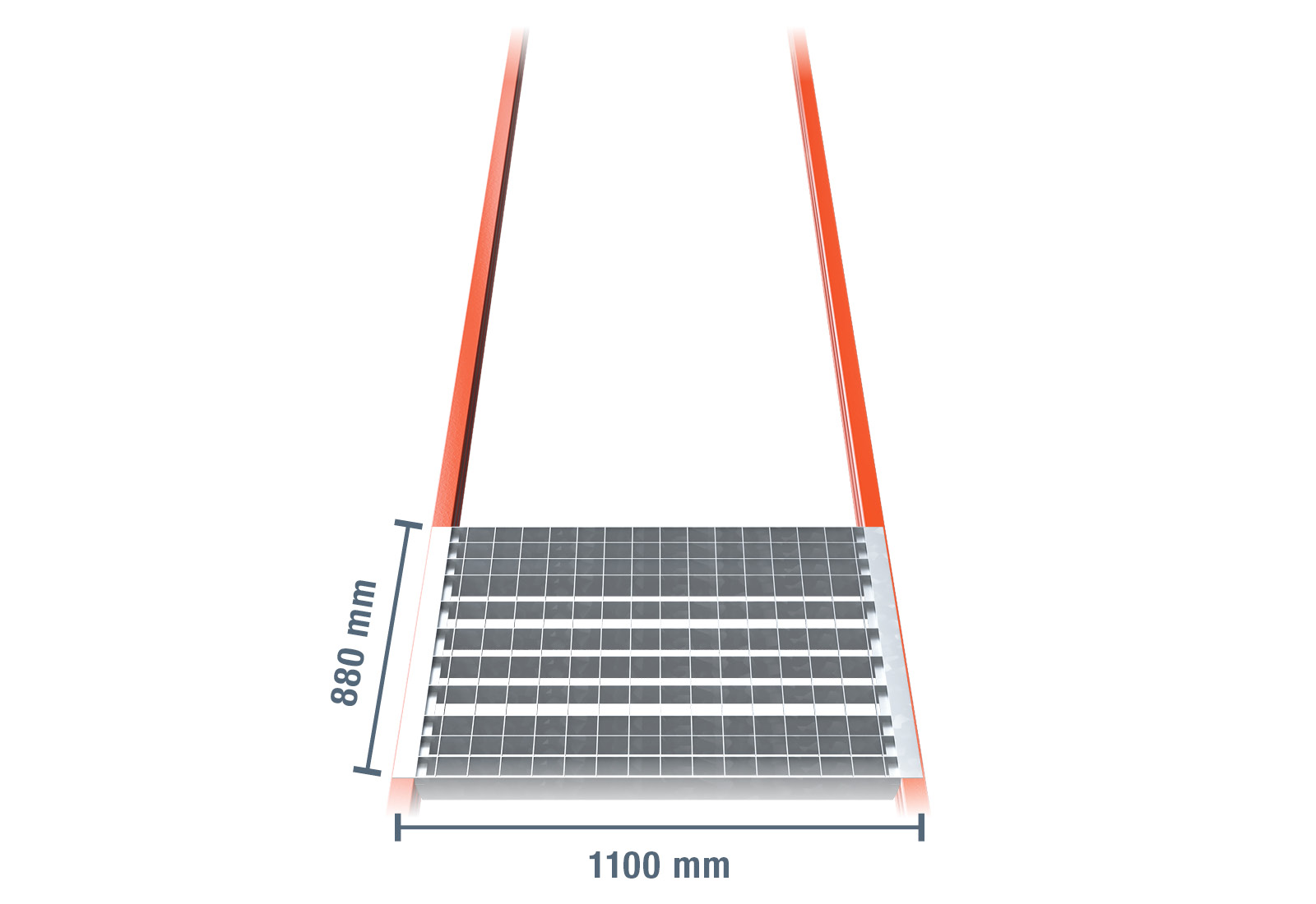 - 1 x modul mřížového roštu pro paletový regál 880 mm x 1.100 mm – max. nosnost na modul 800 kg