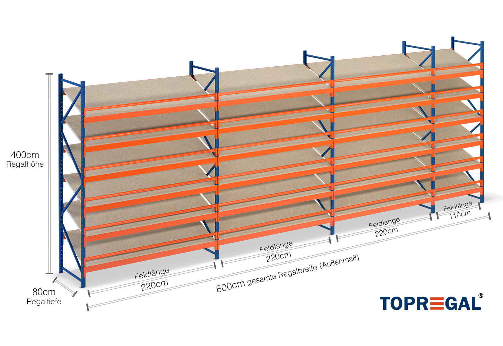 Všechny údaje se vztahují na rovnoměrně rozložené zatížení. Při zatížení nesmí být překročeno zatížení police a zatížení pole. Při používání v zásadě platí platné směrnice o bezpečnosti a ochraně zdraví při práci (Německé pravidlo DGUV 208-061). Společnost TOPREGAL nepřebírá žádnou odpovědnost za nehody/poškození způsobené nesprávným používáním. Náš odborný poradenský tým vám rád zodpoví veškeré dotazy. Uvedené rozměry jsou přibližné a mohou se o několik centimetrů lišit. Pokud potřebujete přesné rozměry požadovaného výrobku, kontaktujte nás.