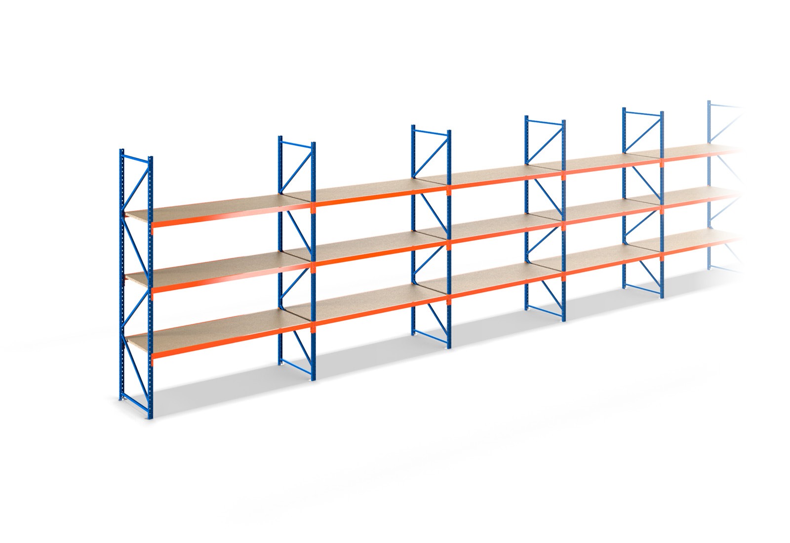 13,7 m skladovací regál LR2000 / hloubka 60 cm / výška 2 m / 3 úrovní / úložná plocha dřevo